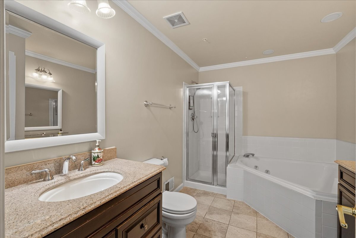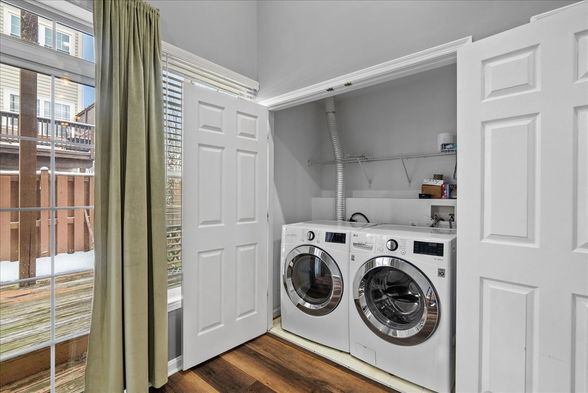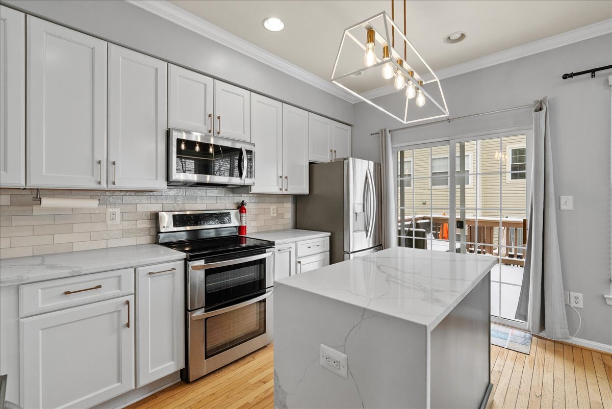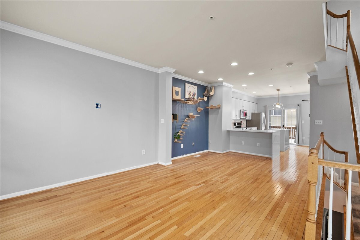 The main level features warm wood floors and inviting living spaces that flow seamlessly from room to room. The well-appointed kitchen includes ample granite counter space and stainless steel appliances, and it opens to a dedicated dining area that’s perfect for everyday meals or entertaining.