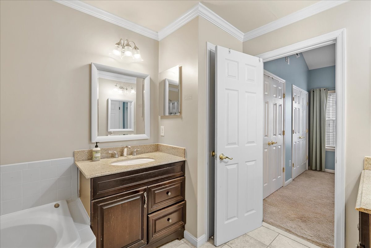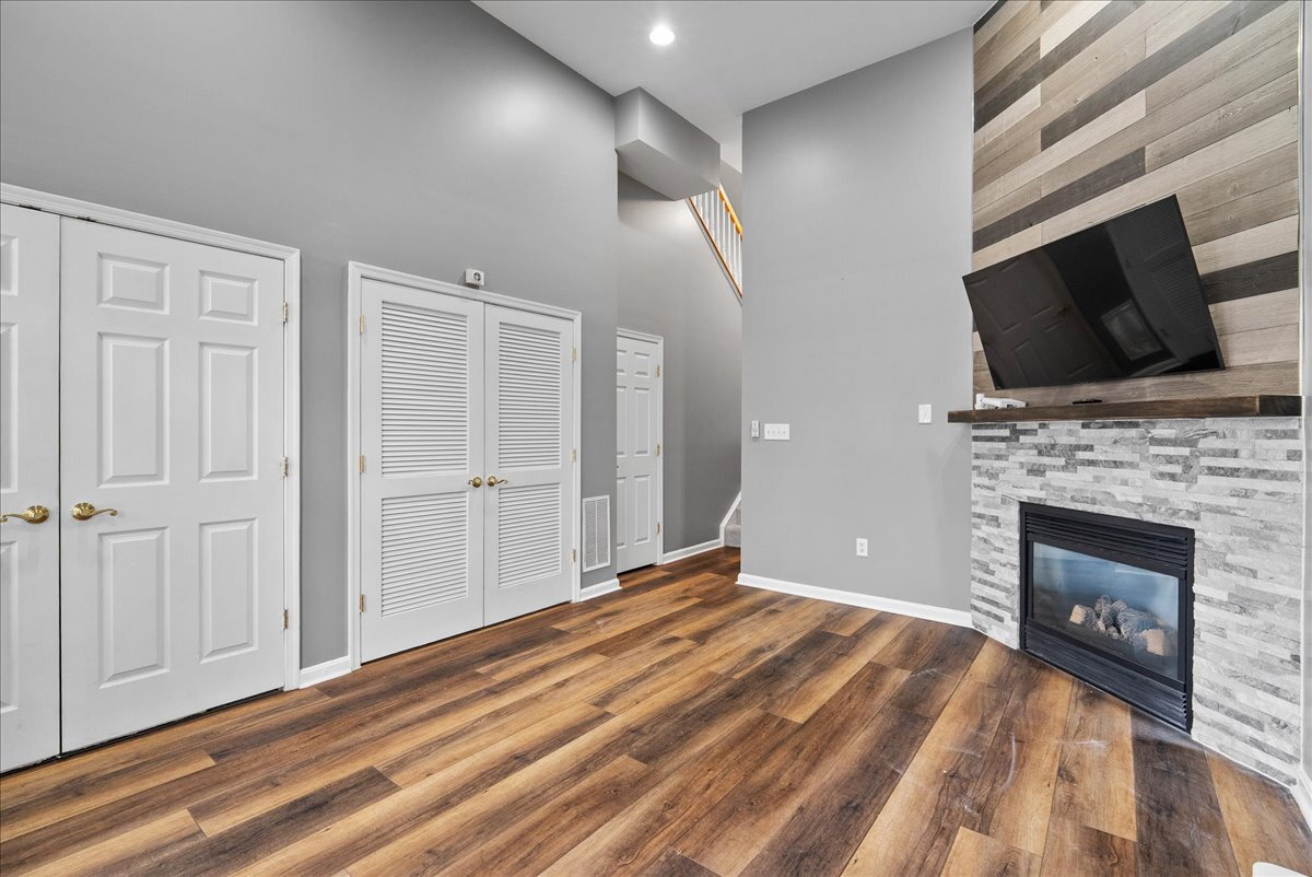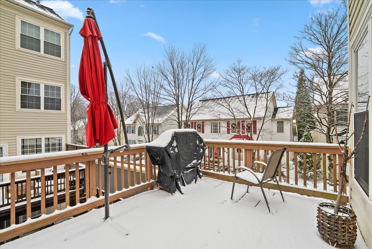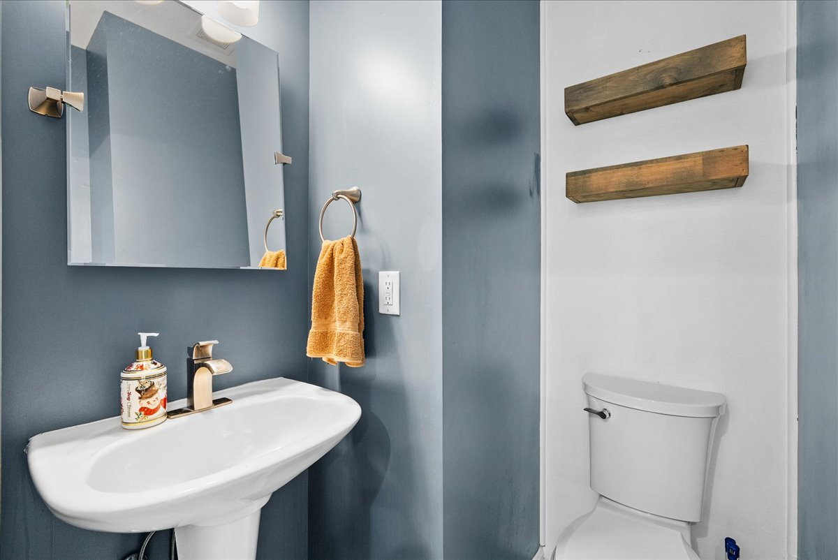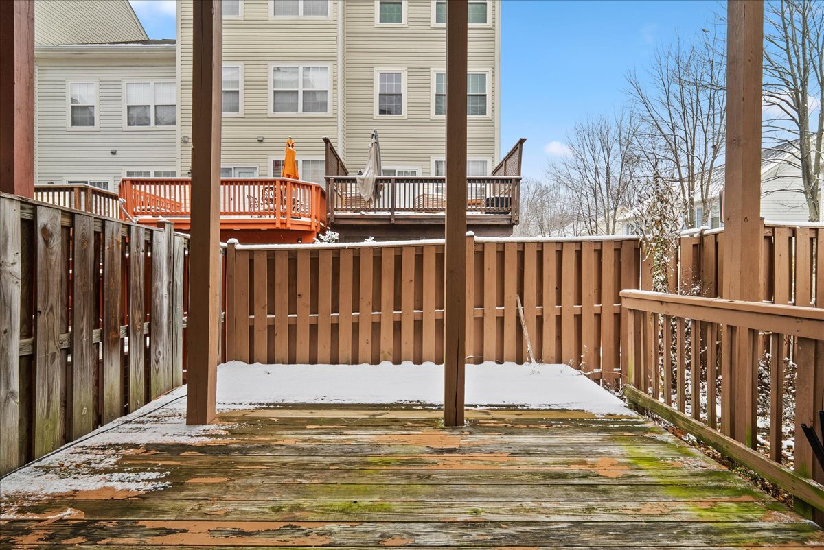 Upstairs, you’ll find three generously sized bedrooms and two full baths, including a primary suite with a soaking tub and separate shower. The upper level is finished with comfortable carpeting, while the lower level offers a cozy family room with a gas fireplace—an ideal spot for relaxing. Step outside to enjoy a private deck, perfect for outdoor dining or unwinding.