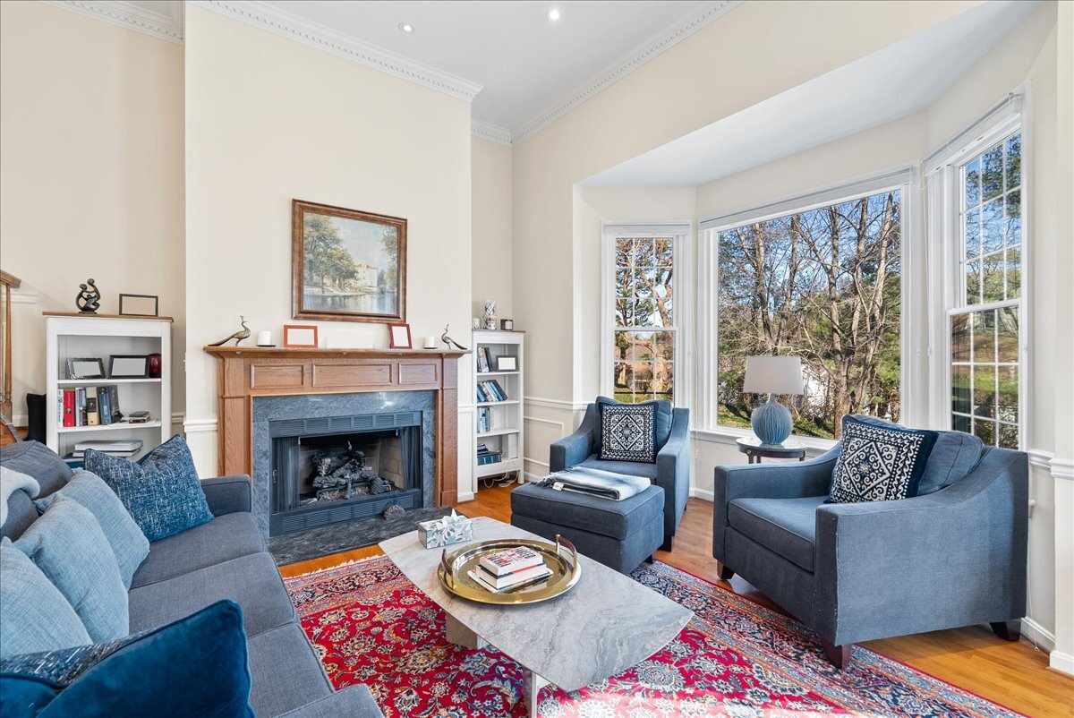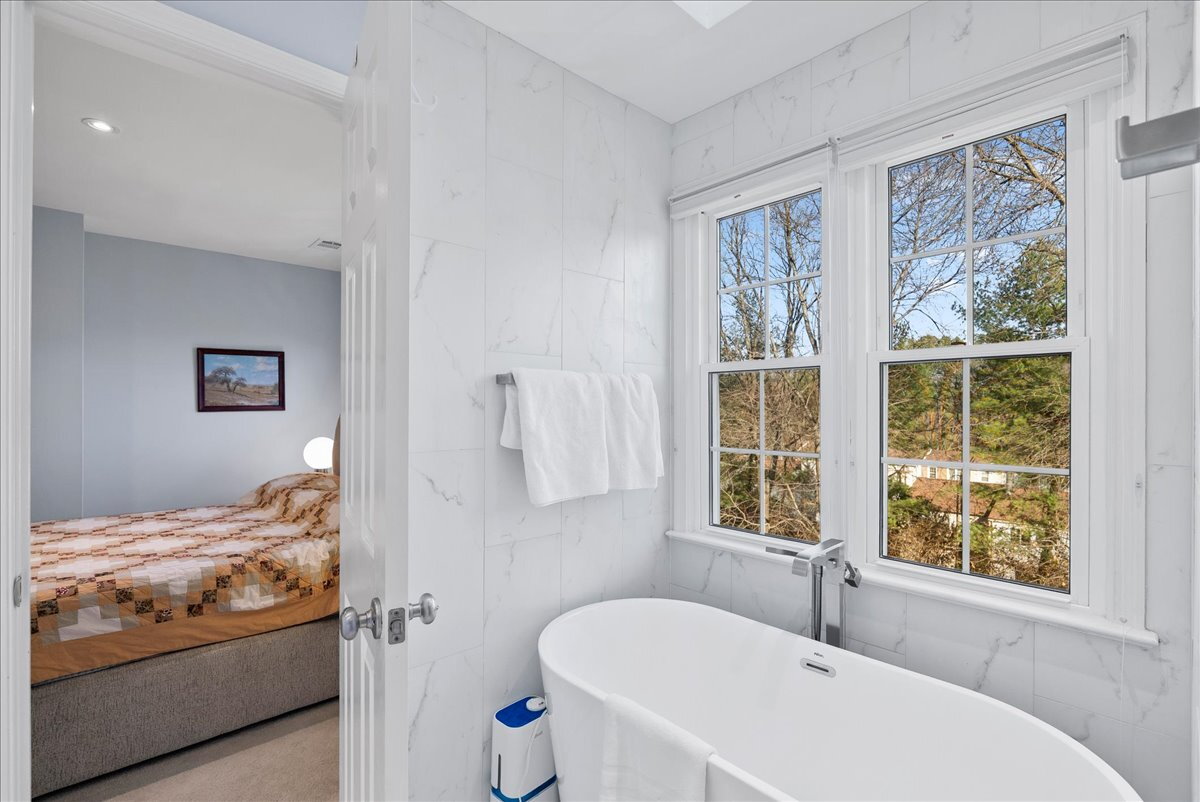 Upstairs, spacious bedrooms are complemented by beautifully updated baths, including a distinguished guest suite ideal for visitors or multi-generational living.