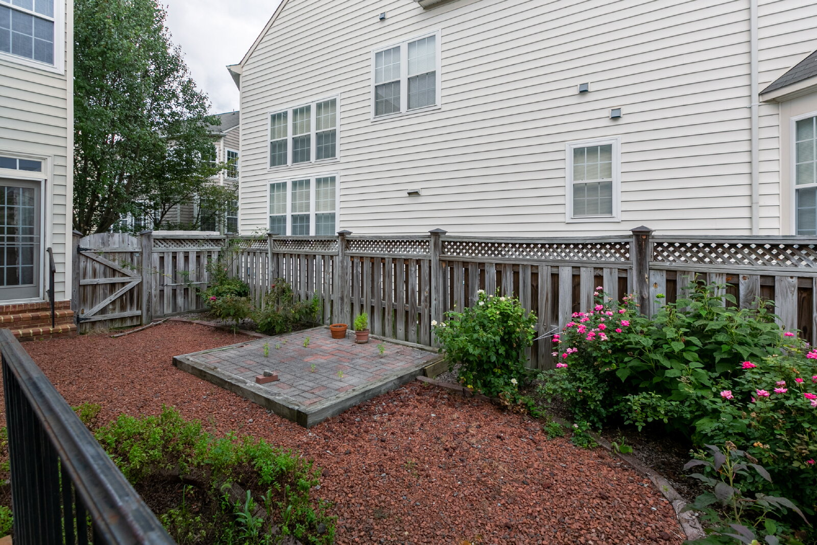Additional highlights include a 2-car attached garage with driveway parking, a private deck, and a fenced side patio perfect for relaxing or entertaining outdoors.